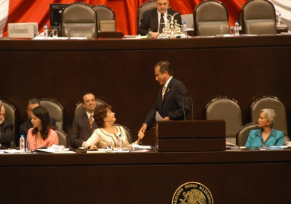 Al referir en su intervención los mecanismos de política exterior que la implementado el gobierno del Presidente Felipe Calderón Hinojosa, Felipe dijo a la Canciller en su intervención en Tribuna que “es importante que México planteé de manera consistente y moderna la visión de su política exterior y que, sin traicionar la vasta tradición de sus valores, genere una discusión con sentidos propositivos y honesta autocrítica, que nos permita comprender mejor esta nueva realidad y no solo adaptarnos al contexto internacional sino mantenernos como un país referente en la construcción de un mundo mejor. Se trata de impulsar una política exterior responsable y activa, que aprovechando los cuadros profesionales del Servicio Exterior, promueva los intereses de México y asuma los desafíos de la globalización. Es perentorio encontrar definiciones precisas, apuntalarlas y sin recelos expresarlas como la honesta y transparente política diplomática mexicana. Nuestra pertenencia histórico-cultural nos afirma en la identidad latinoamericana, que es consustancial a nuestro "ser" mexicano”.