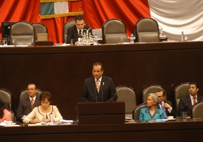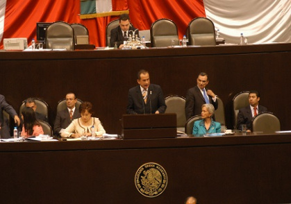Habiendo sido citada por el Pleno de la Cámara de Diputados en la Glosa al Primer Informe de Gobierno del Presidente Felipe Calderón Hinojosa, la Embajadora Patricia Espinosa Cantellano, Secretaria de Relaciones Exteriores, acudió con el propósito de responder a las inquietudes del Pleno el martes 2 de octubre. Correspondió al Diputado Federal Felipe Díaz Garibay llevar a tribuna el posicionamiento del Grupo Parlamentario del Partido Acción Nacional.