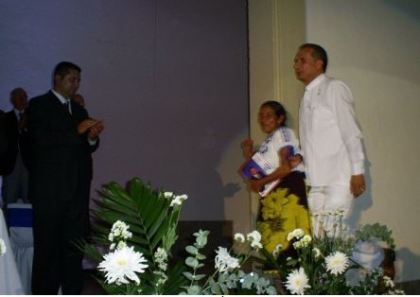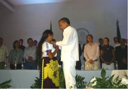 Y vino lo mejor del acto, Felipe bajó del estrado, se dirigió al público y fue hasta donde se encontraba la Maestra Estela Hernández Saucedo, mujer indígena humilde y líder de la organización “Manos Indígenas Creadoras de la Cañada, A.C.”, creación de Felipe, subió de nueva cuenta con ella y frente a todos se desprendió el broche de oro con el logotipo de la LX Legislatura que les fue entregado a todos los Diputados en septiembre de 2006, a ella misma le dijo: “esto es suyo, a usted le corresponde portarlo de ahora en adelante” y le dio un beso en la frente en señal de profundo respeto.