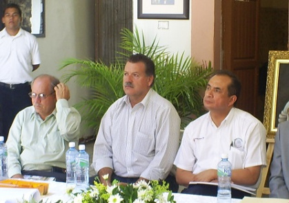 Reunión de empresarios sahuayenses afiliados a la Cámara Nacional de la Industria de la Transformación (CANACINTRA) con representantes de la empresa financiera norteamericana Evensen Dodge.