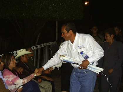 El primer día de campaña trabajó arduamente en la cabecera a la que dedicara buen tiempo de su estancia en ese Municipio, de igual forma lo hizo el miércoles 22 y jueves 23 de septiembre visitando las comunidades de El Alvareño, La Angostura, Negrete, El Capulín y El Coenqueño.